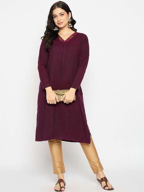 - Get your woollen kurtas in mixed patterns and also in acrylic blend materials.