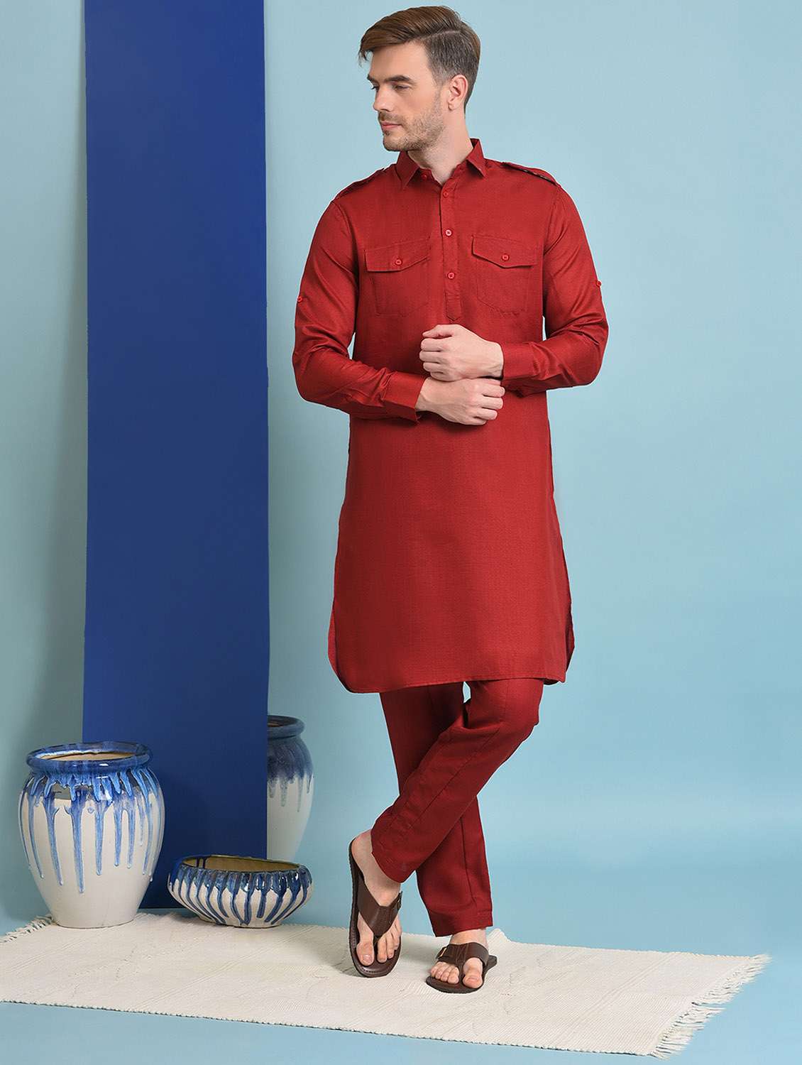 - » maroon blend pathani ethnic wear set