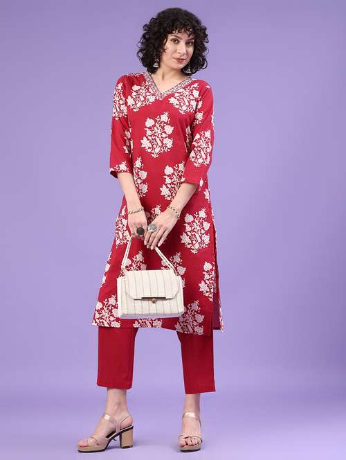 - Find gorgeous sets of ethnic wears in trending designs in maroon colors suitable for casual wear of occasions.