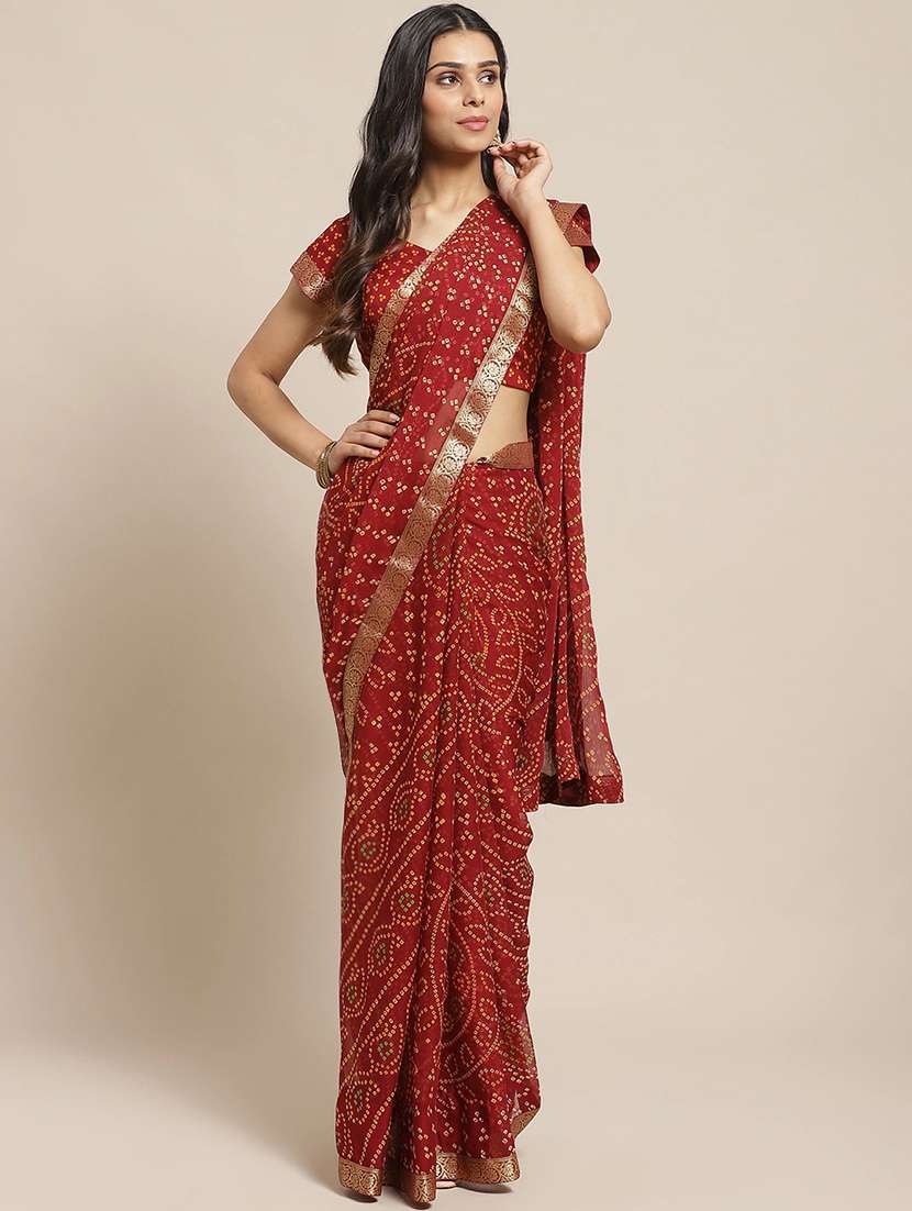 maroon chiffon printed saree with blouse - 17792036 - Very Small Image - 1