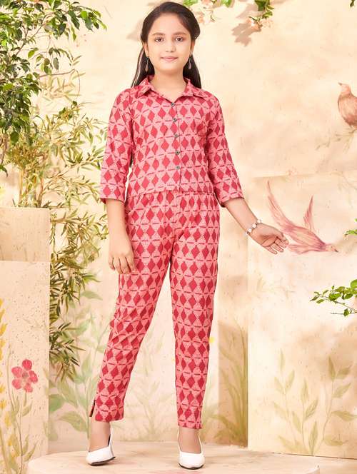 • Browse through the huge collection of casual wear twin sets and jump suits for girls in red colors and designs to make your young lady look the fashionista that she is.