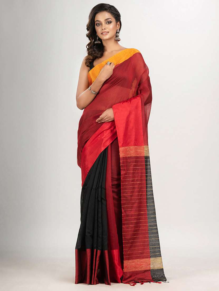 - » maroon cotton blend handloom saree with blouse