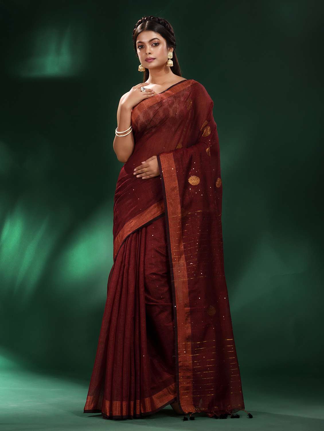 maroon cotton blend saree with blouse