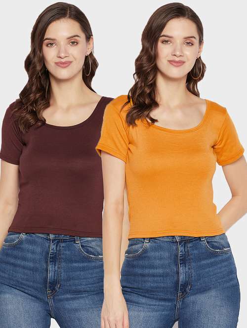 - Opt for this top made up of cotton blend material and get it in a varied neck design.