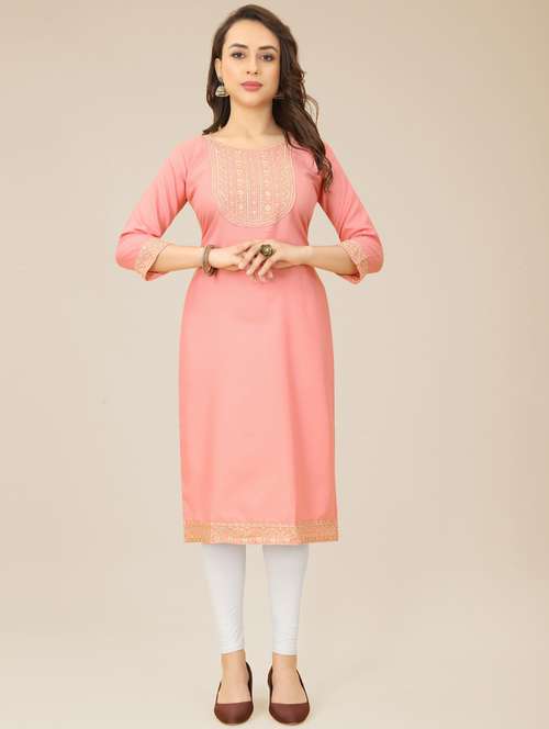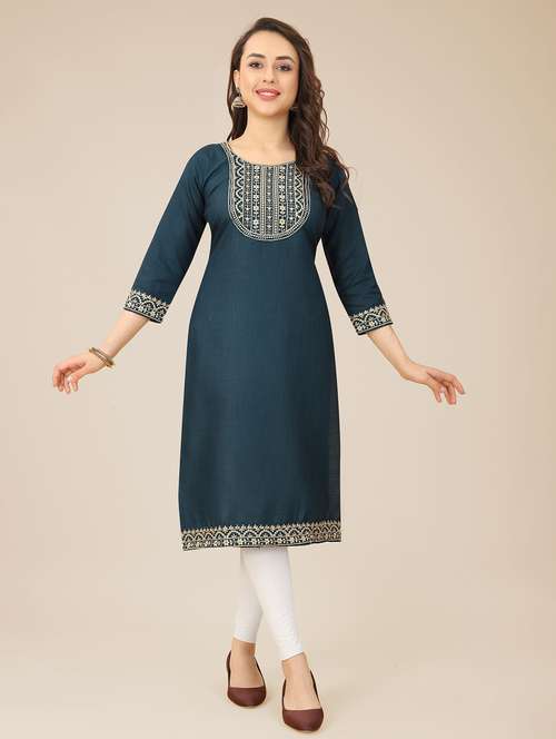 - Grab this beautiful kurta made up of cotton blend fabric featuring round neck designs.