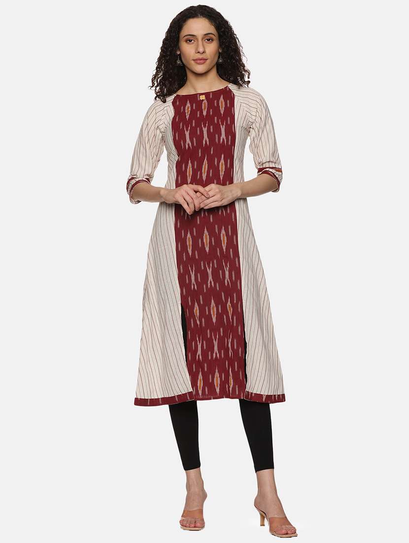 women ikat cotton a-line kurta - 21066300 - Very Small Image - 1