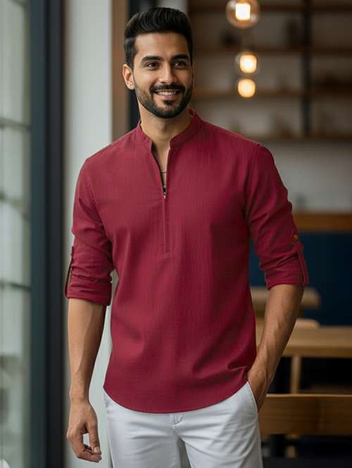 - » men solid mandarin neck short kurta