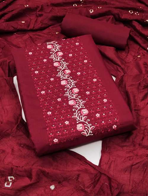women solid with work embroidered unstitched suit set - 22002660 - Very Small Image - 1