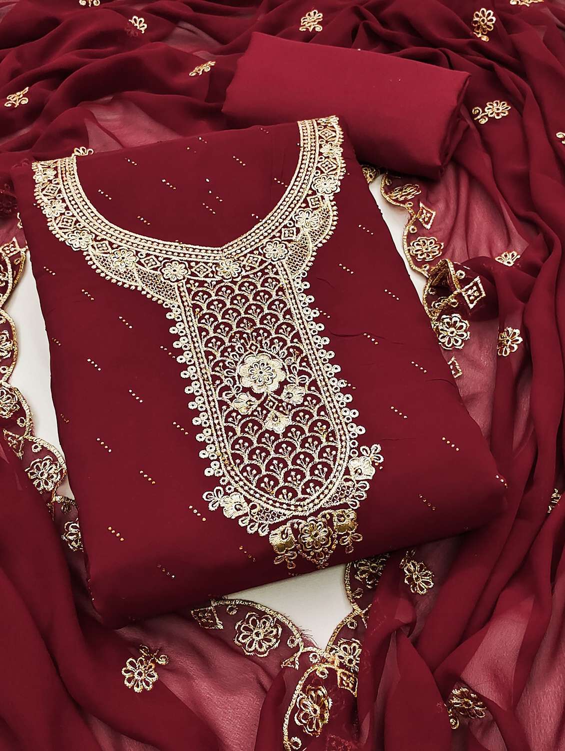 - Look ultra gorgeous in unstitched suits from Leeli Peeri Designer and grab these beautiful suits in maroon colour.