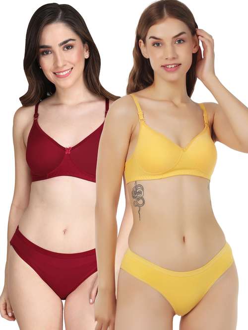 women pack of 2 solid bra and panty set
