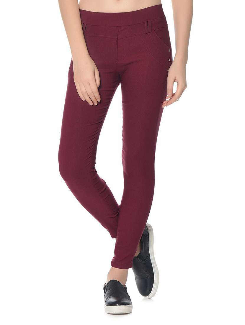 - » maroon solid mid rise jegging