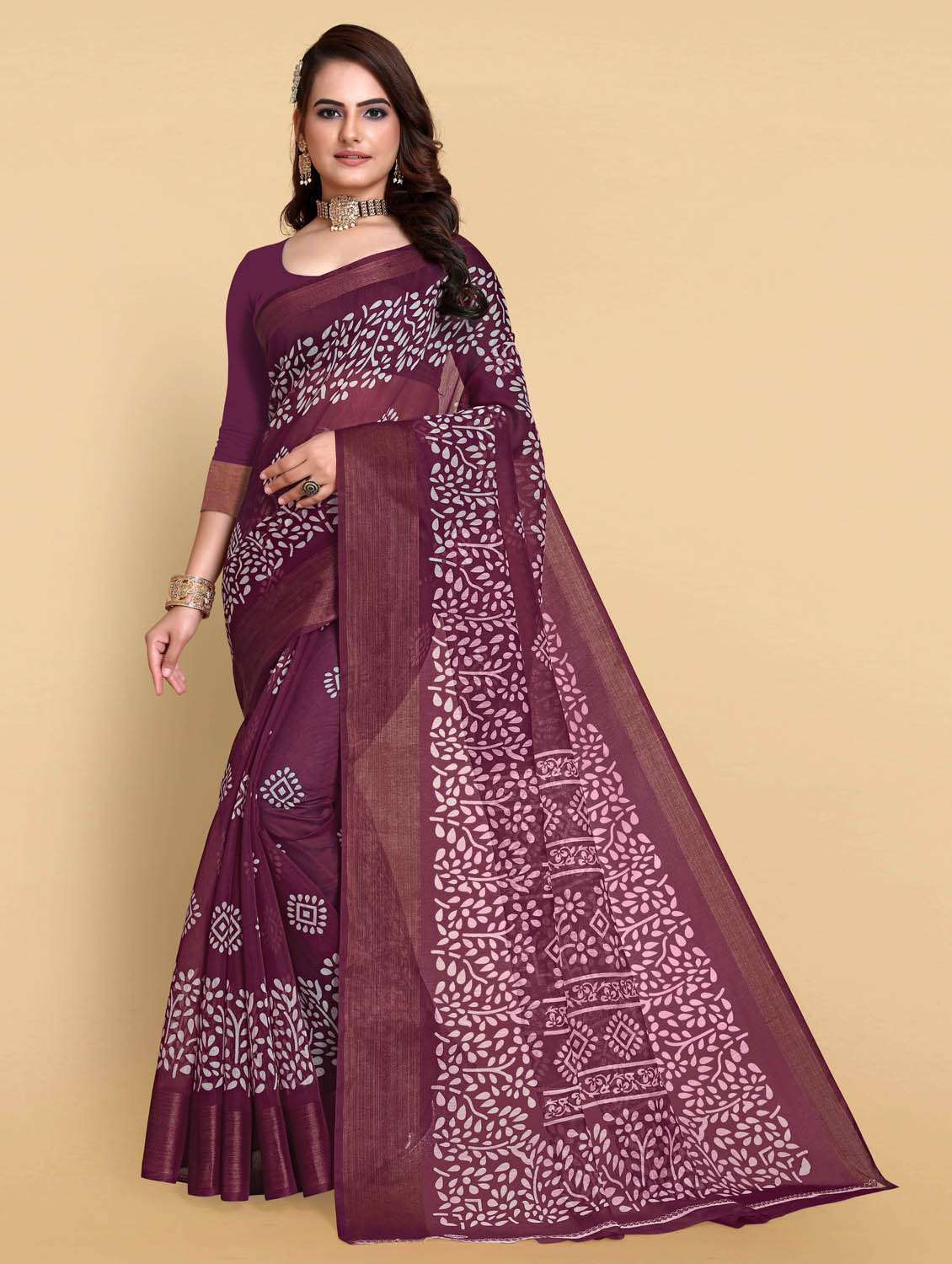- » women's batik purple colored saree with blouse