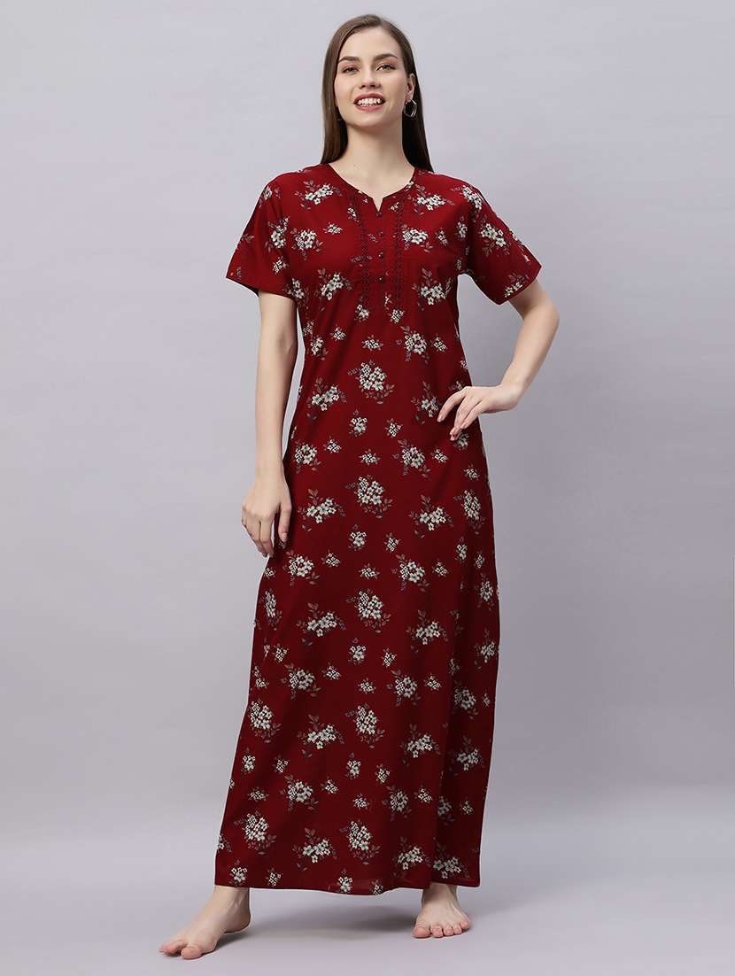 Quira Comfortable Women's Full Length Cotton Blend Half Sleeves Nighty, Soft and Elegant Sleepwear