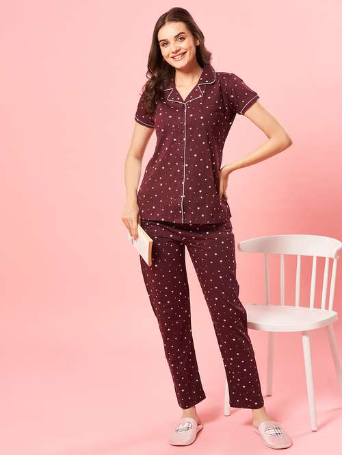 - After a long tiring day, slip into something homely, shop for the all-new collection of nightwear sets for ladies in S sizes and gorgeous maroon designs and colors.