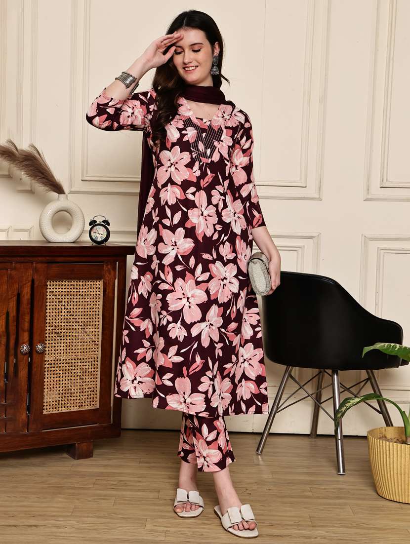 - Find gorgeous sets of ethnic wears in trending designs in maroon colors suitable for casual wear of occasions.
