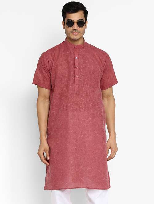 - » men solid mandarin collar short sleeve kurta