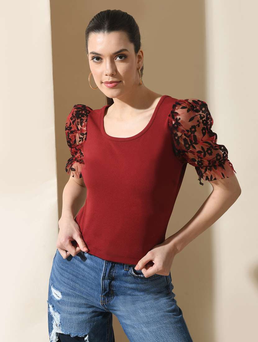 - » women maroon cotton blend regular top