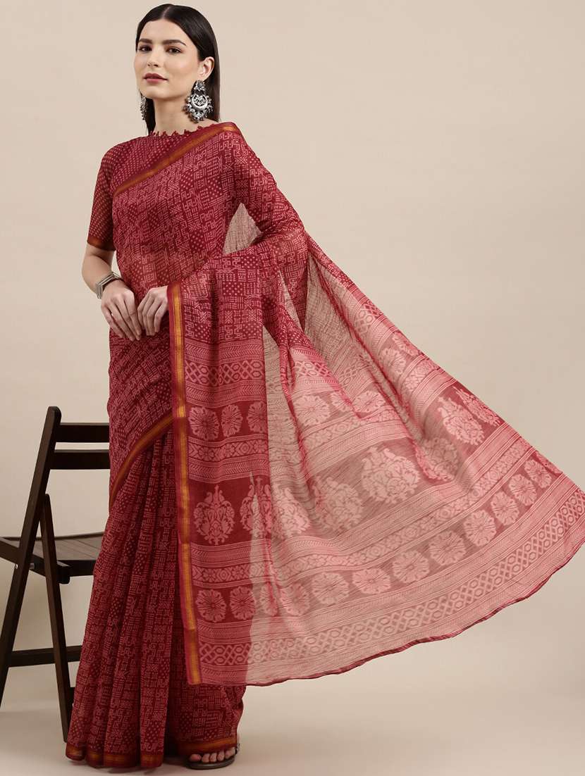 - » maroon cotton blend printed saree