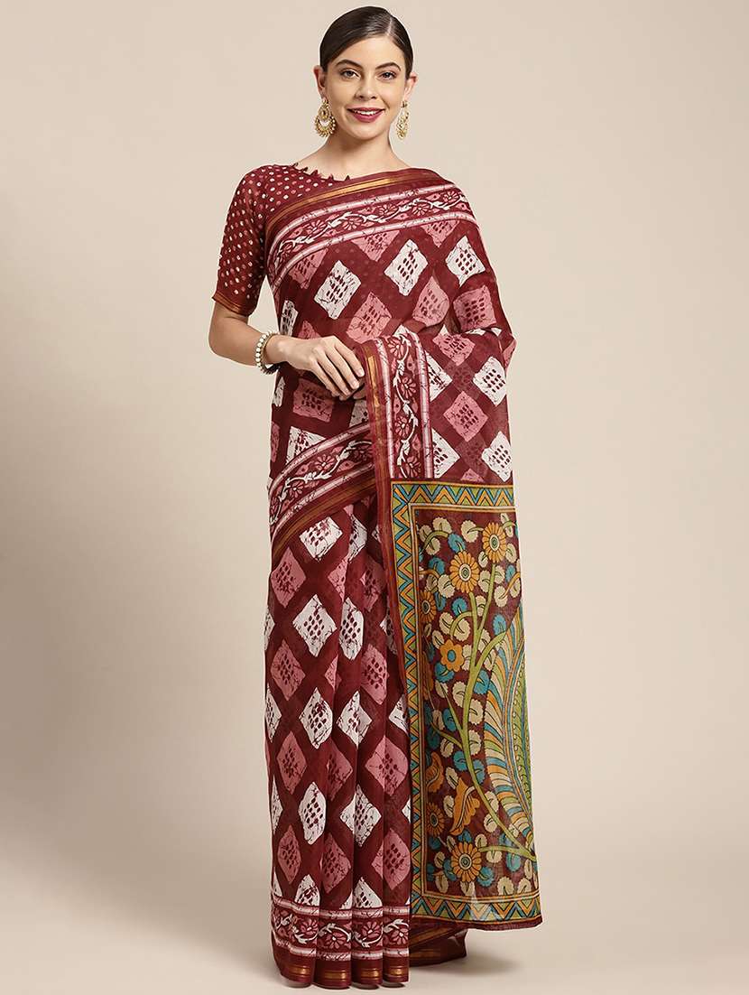 - » women's batik maroon colored saree