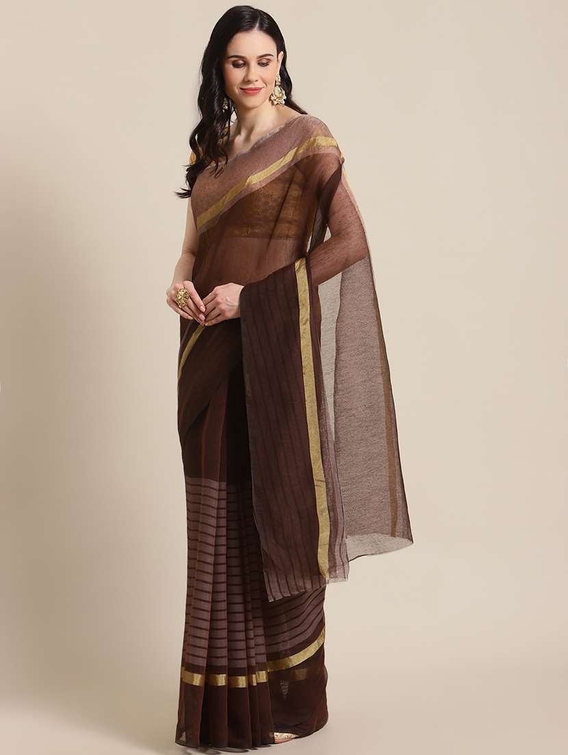 - » women's stripes maroon colored saree with blouse