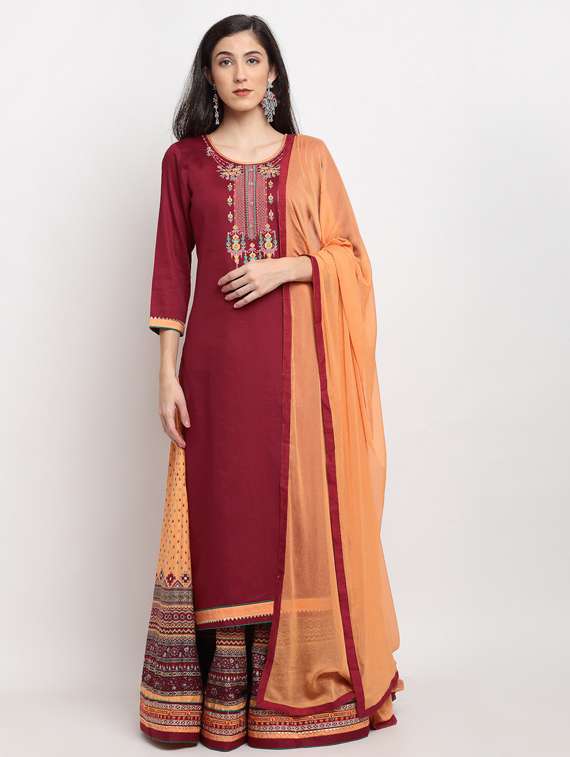 - » maroon cotton blend semistitched suit