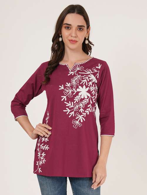 women embroidered three quarter sleeve straight kurti