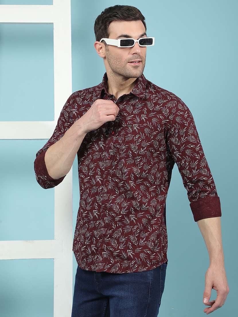 - » men maroon printed long sleeve casual shirt