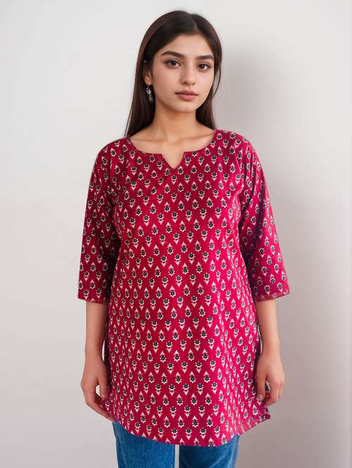 women printed three quarter sleeve straight kurti - 22148007 - Very Small Image - 1