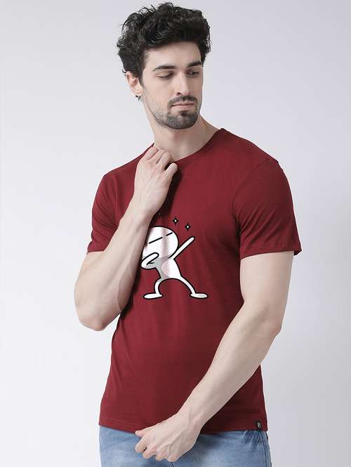 men round neck chest print t-shirt