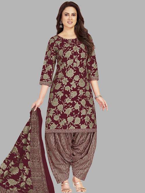 - Look ultra gorgeous in unstitched suits from Ganpati Cotton Suits and grab these beautiful suits in maroon colour.