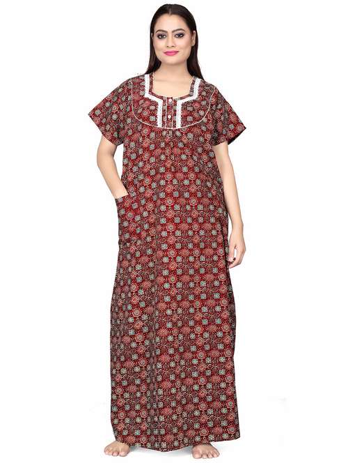 - » maroon printed detailed maxi nightdress