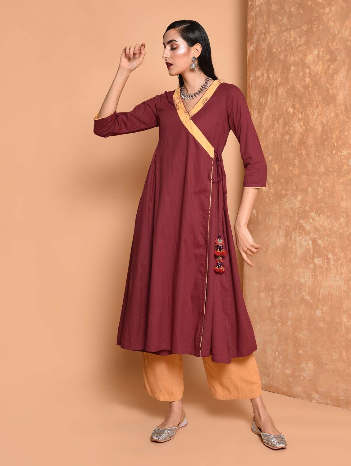 burgundy angrakha kurta with tassels - 15699466 - Very Small Image - 1
