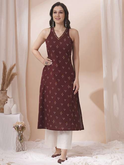 - » women maroon self design sleeveless a-line kurta