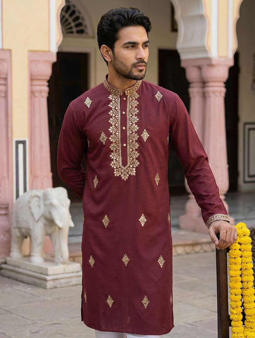 Imported Japanese Fabric kurta featuring elegant tonal embroidery with subtle sequin accents. Designed with a mandarin collar and a clean straight fit for festive and wedding occasions.