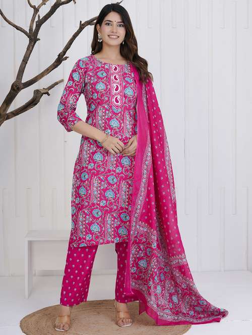 women three quarter sleeve kurta pant with dupatta set - 21905862 - Very Small Image - 1