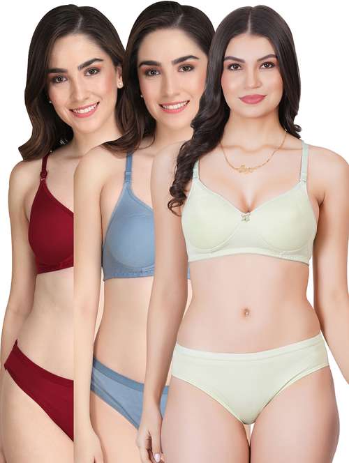 women pack of 3 solid bra and panty set
