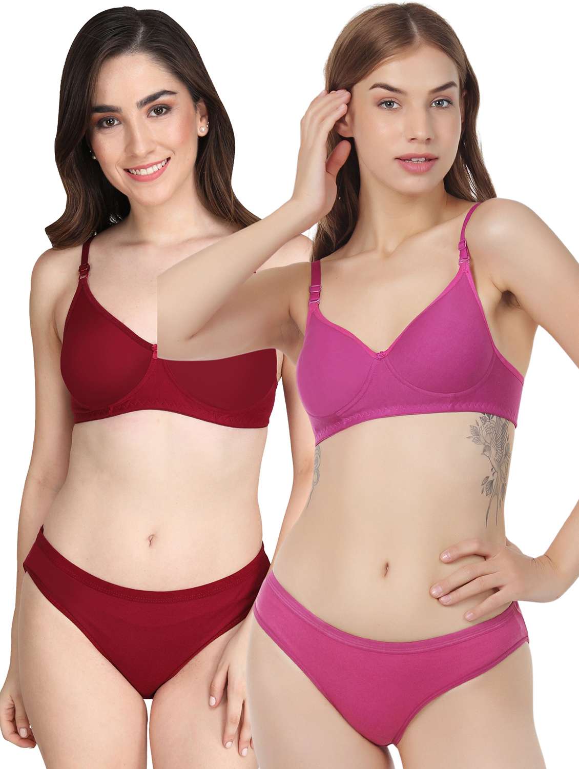 Liigne Women Everyday Padded Bra Panty Set (Pack Of 2) - This Lingerie Set Made of Pure Cotton