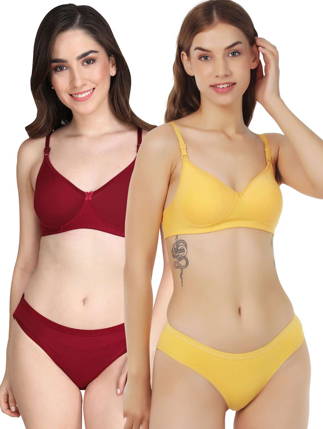 Liigne Women Everyday Padded Bra Panty Set (Pack Of 2) - This Lingerie Set Made of Pure Cotton
