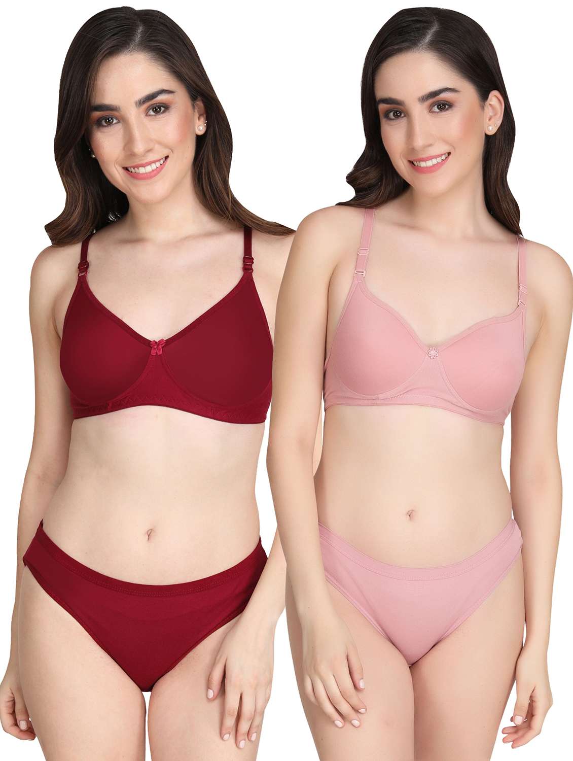 Liigne Women Everyday Padded Bra Panty Set (Pack Of 2) - This Lingerie Set Made of Pure Cotton