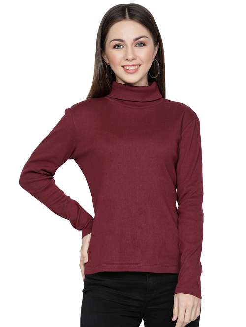 - » women maroon turtle neck pullover