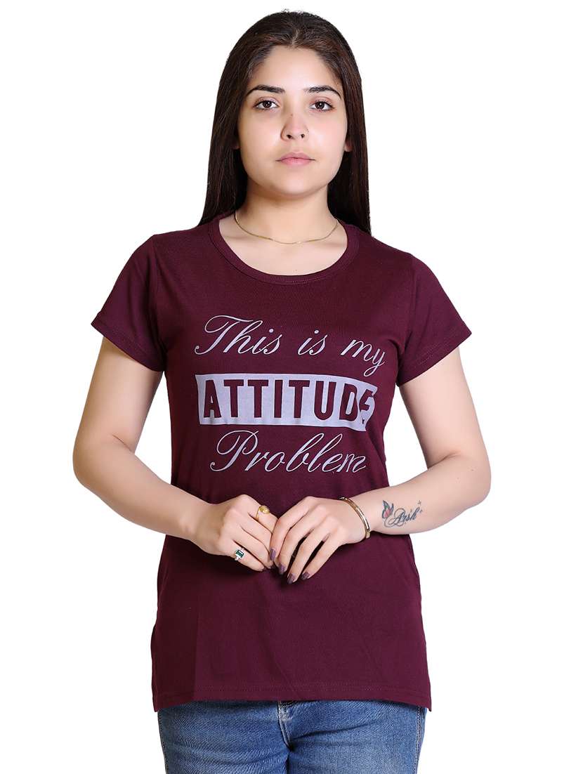 - » women's chest print round neck t-shirt