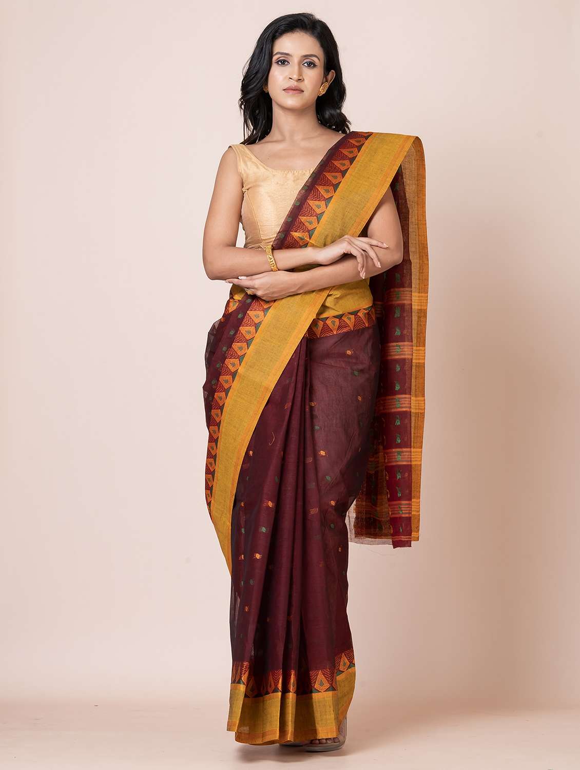 Puku Pure Cotton Tant Tangail saree with Buti Work without blouse fabric