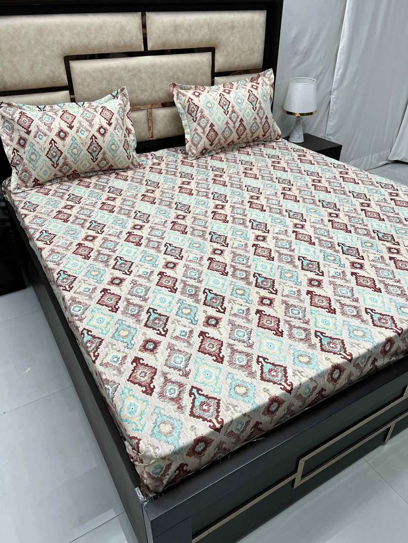 printed tc fitted king-sized bedsheet with 2 pillow covers
