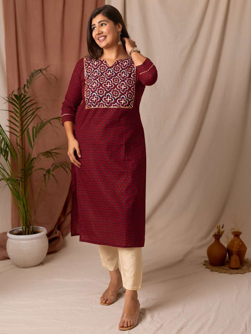 - Grab this beautiful kurta made up of cotton fabric featuring notch neck designs.