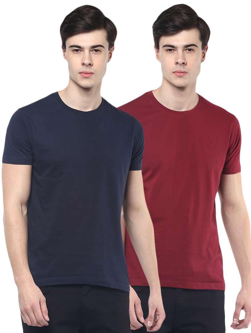 - » navy blue and maroon solid combo t-shirts