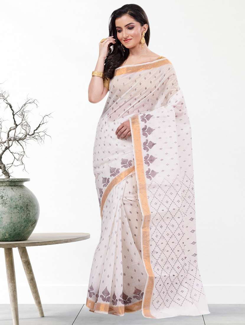 - » women's printed white colored saree