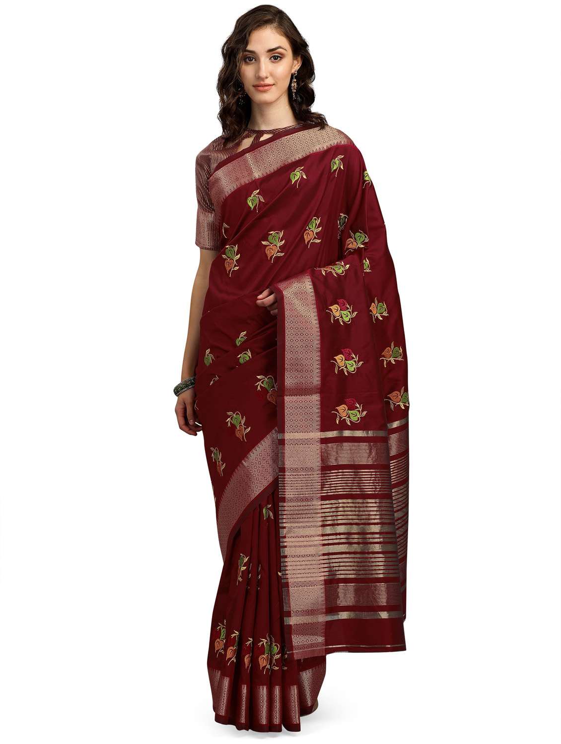 - » women embroidered bordered saree