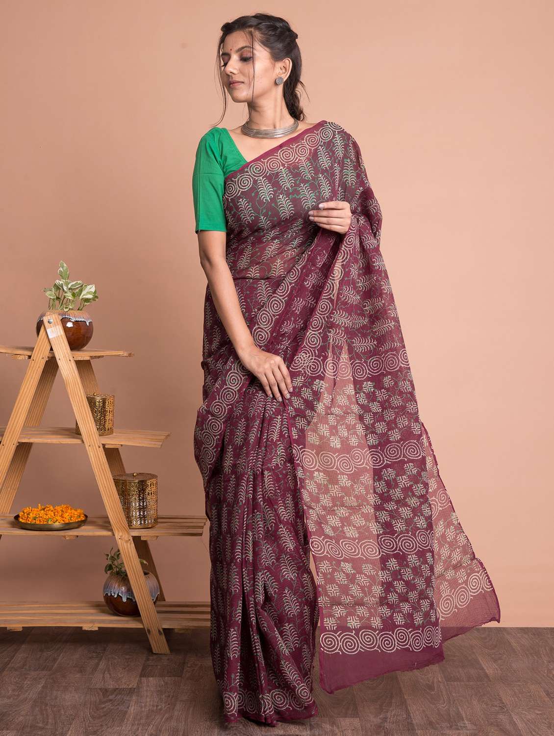maroon printed saree with blouse