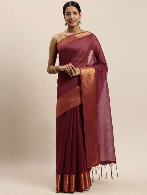 - » maroon cotton silk saree with blouse