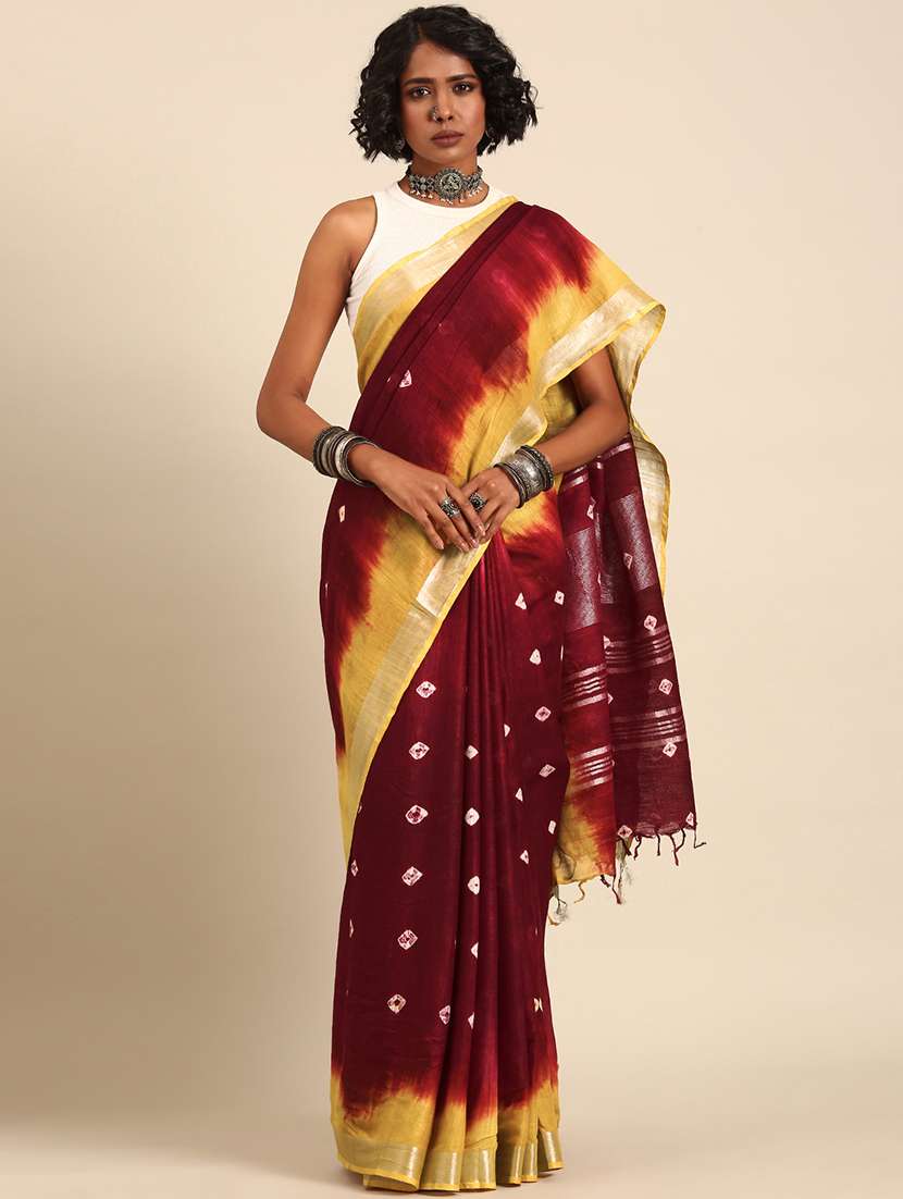 - » women maroon handloom saree with blouse
